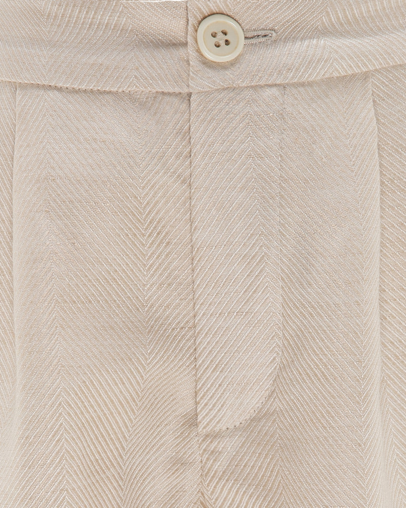 The Boys Bermuda Positano Shorts bring timeless sophistication to warm-weather adventures. Crafted from a breathable blend of Tencel and linen in a herringbone weave, these classic shorts combine style and functionality. The back elastic ensures a comfortable fit, while two knife pleats at the front add a tailored touch.