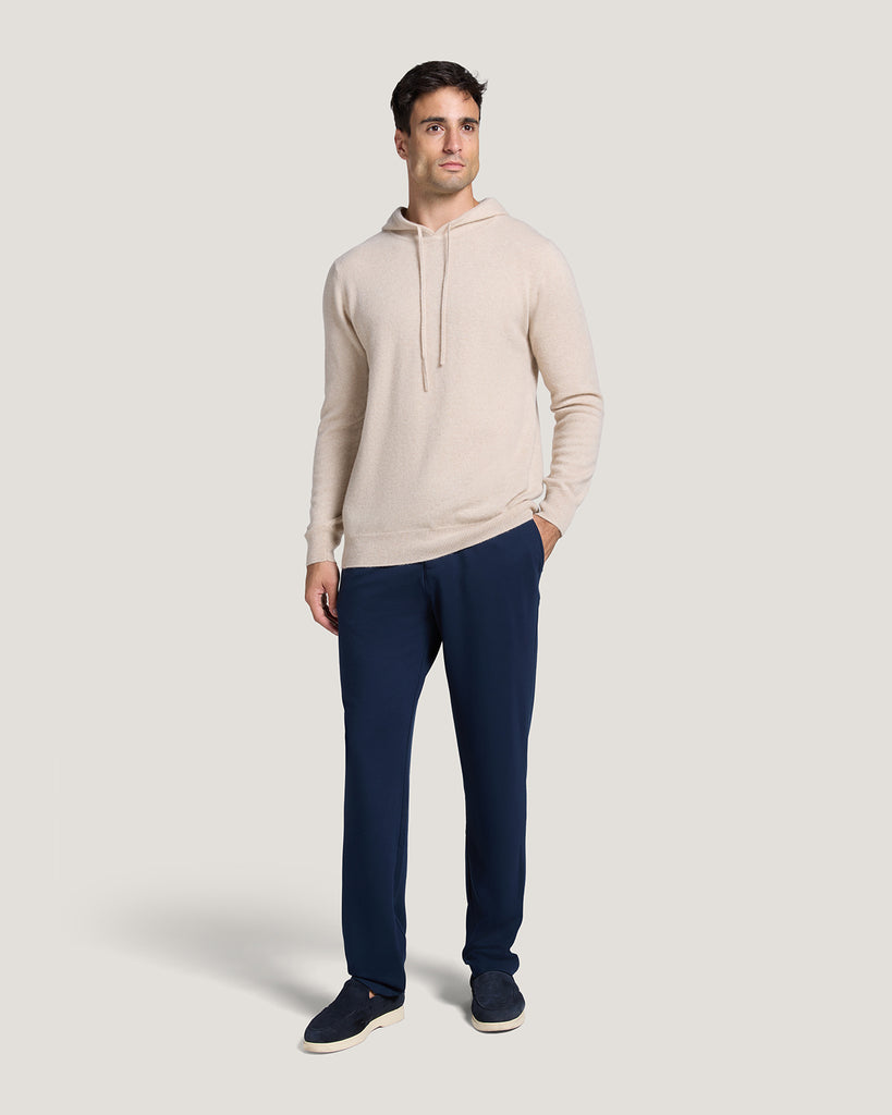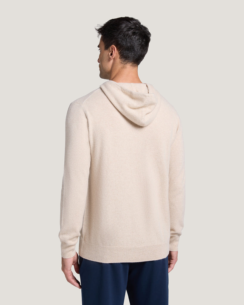 The Men's Declan Cashmere Drawstring Hoodie redefines comfort and luxury, crafted from 100% pure cashmere for a sumptuously soft, breathable feel. Featuring a relaxed fit and adjustable drawstring hood, this hoodie offers both style and functionality. Its lightweight construction provides warmth without bulk, making it perfect for layering or casual wear. Elevate your loungewear collection with this timeless, premium piece, ideal for those who appreciate refined comfort and sophisticated design.