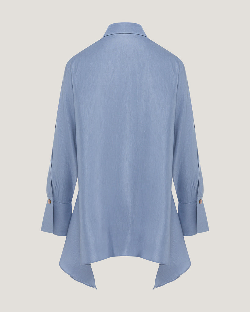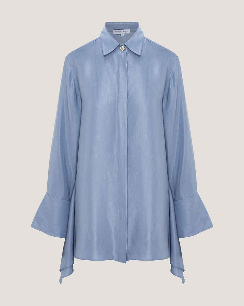 Sophistication meets modern elegance in Women Carol Cuff Detailed Shirt. Relaxed-fit shirt with a slightly dropped shoulder and a tailored collar offering a luxurious feel against the skin. Designed with precision features an invisible buttoning tab, extended hem with side slits, and long sleeves finished with glass cuffs. Accented with mother-of-pearl buttons for a refined touch.