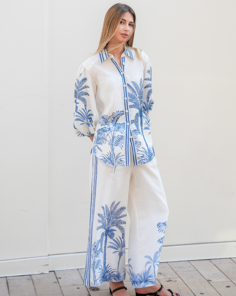 Chic and breathable, the Juliette Sahara Printed Trousers are made from 100% linen, offering effortless style and comfort for warm days. Featuring a relaxed, tailored fit and the striking Sahara-inspired print, these trousers bring a refined yet earthy elegance to your wardrobe. Designed for versatile wear—from casual daytime looks to elevated evening ensembles—they pair beautifully with the matching shirt or a simple neutral top. A must-have for the modern woman who values comfort.