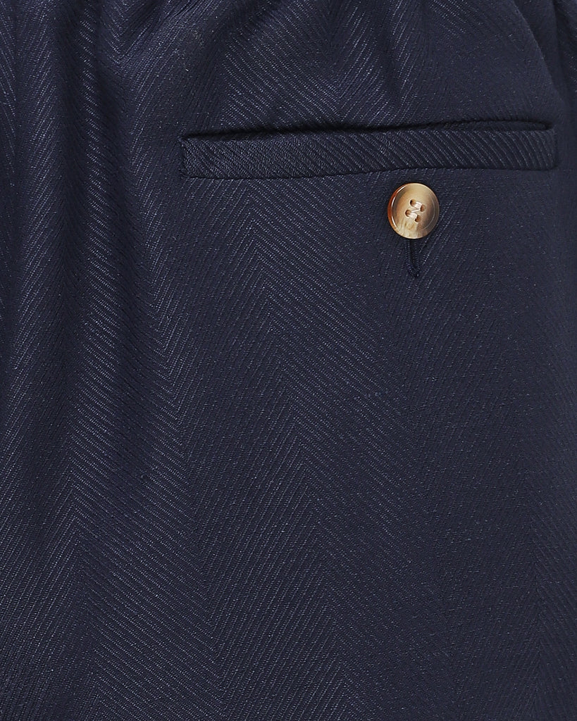 The sophisticated herringbone weave enhances the silhouette, subtly contouring the frame while ensuring unrestricted movement. Designed with a tailored yet relaxed fit, they can be effortlessly styled for both casual and formal occasions. Whether paired with a crisp linen shirt for a polished look or a lightweight polo for laid-back sophistication, the Position Trousers embody timeless style with contemporary versatility.