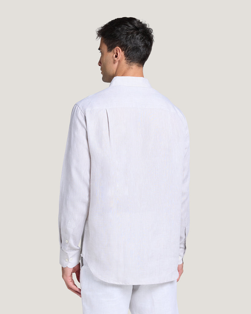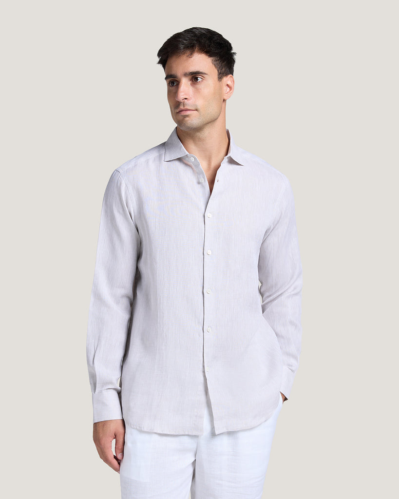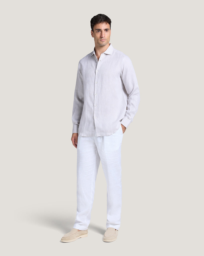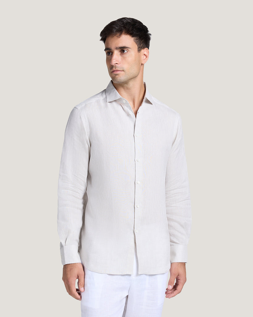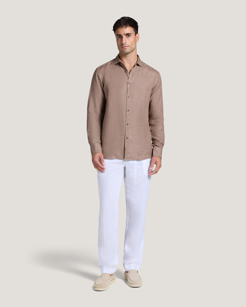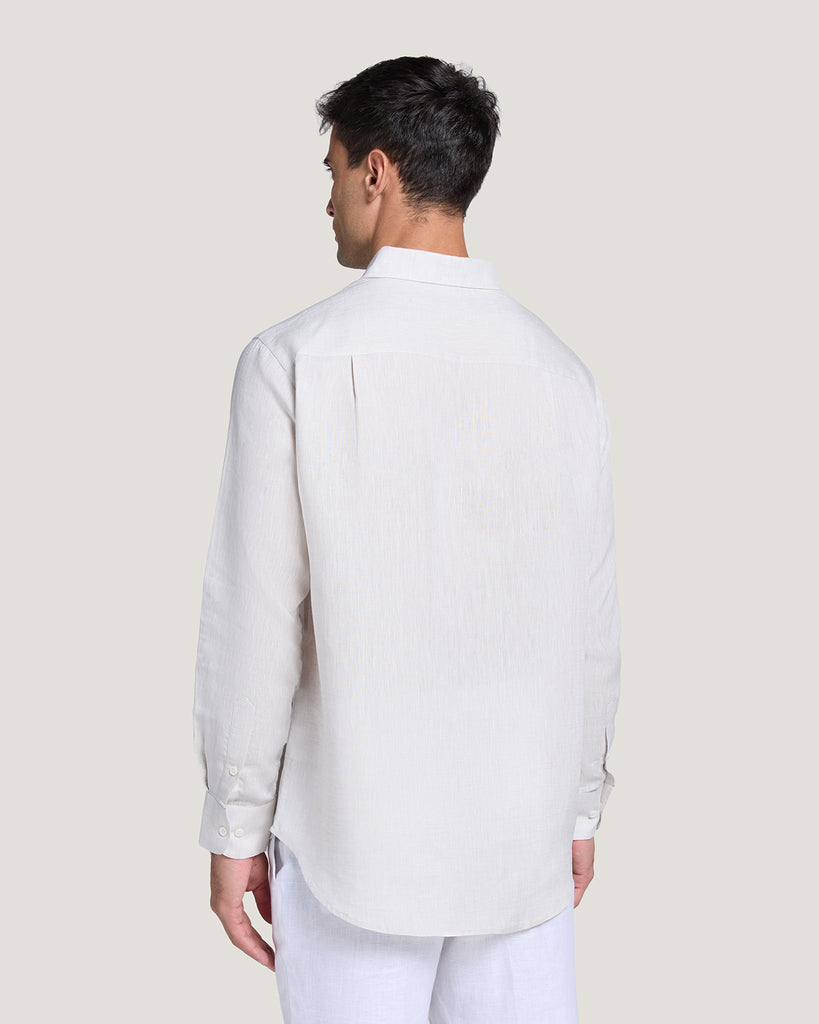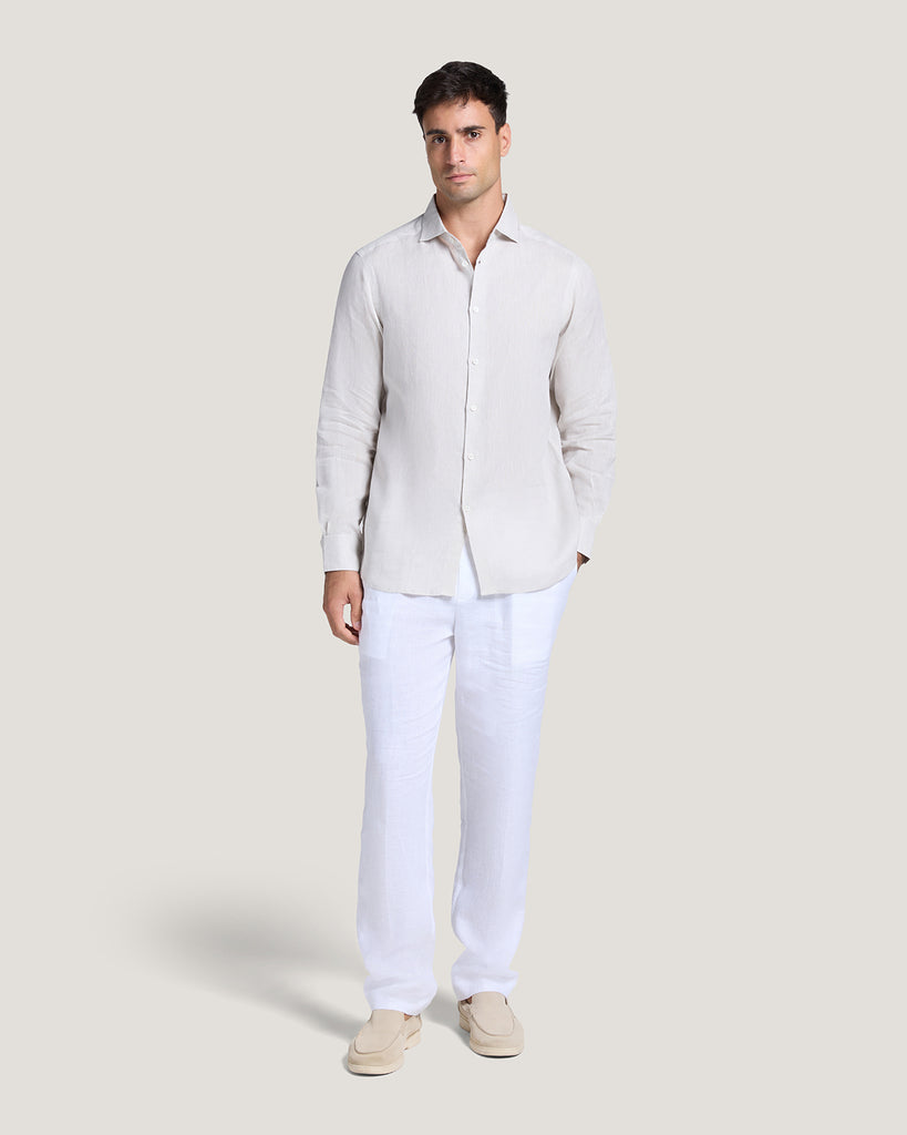 Carter & White’s classic linen shirt is a timeless garment that can be styled up or down, whatever the occasion calls for. Crafted from a lightweight and breathable light beige, linen fabric, providing both comfort and sophistication. It features a classic button-down style and a spread-collar with buttoned cuffs.