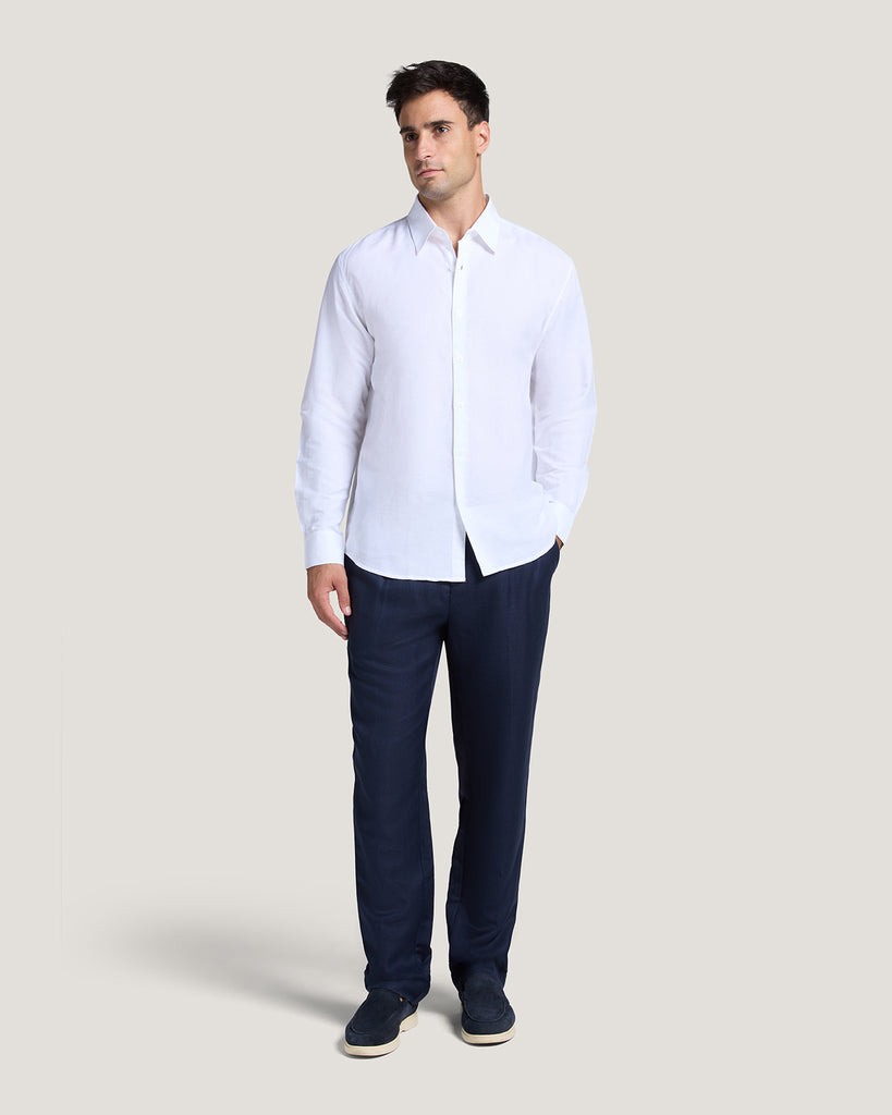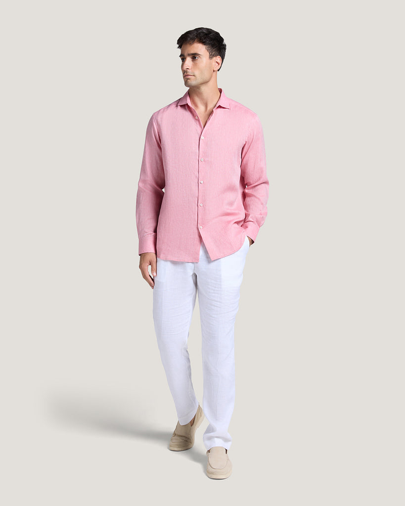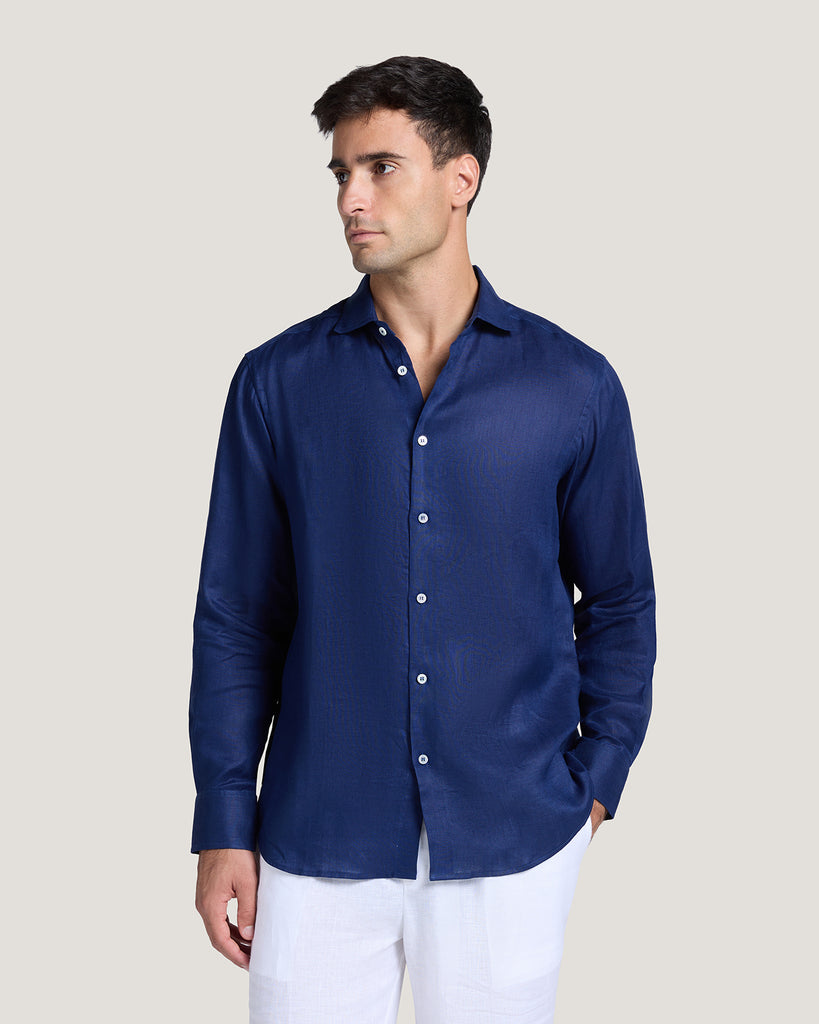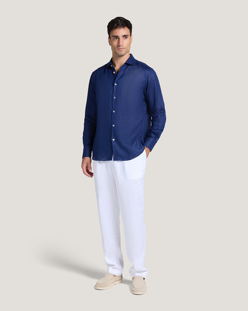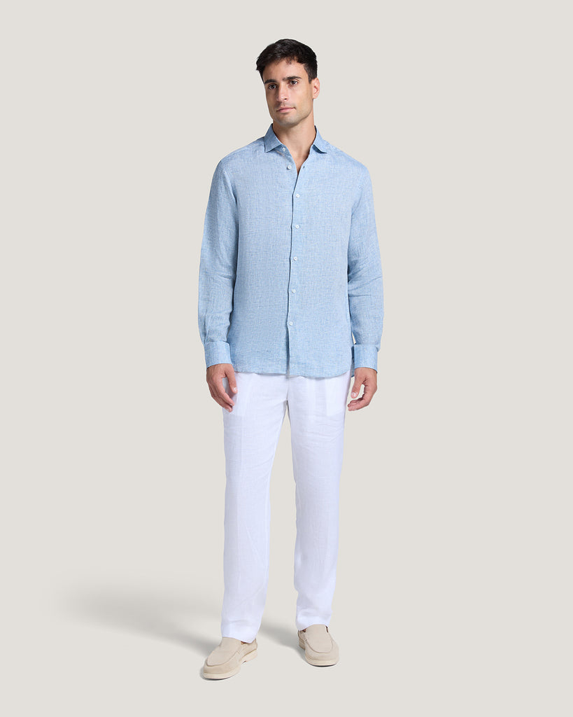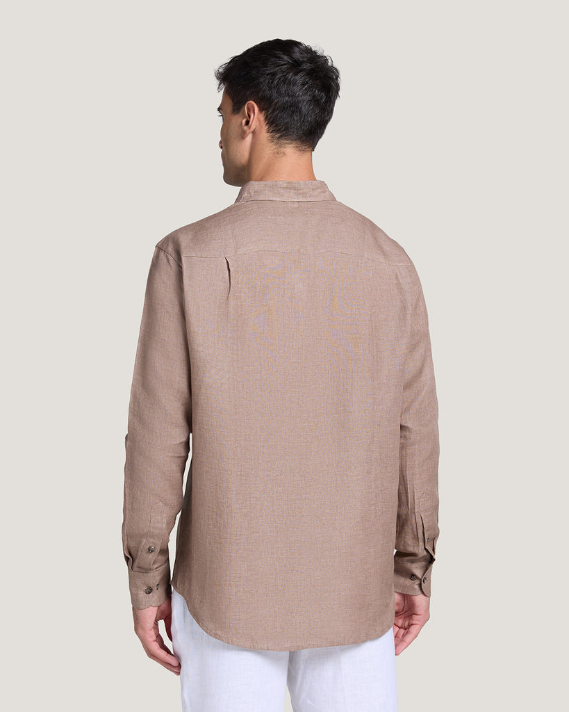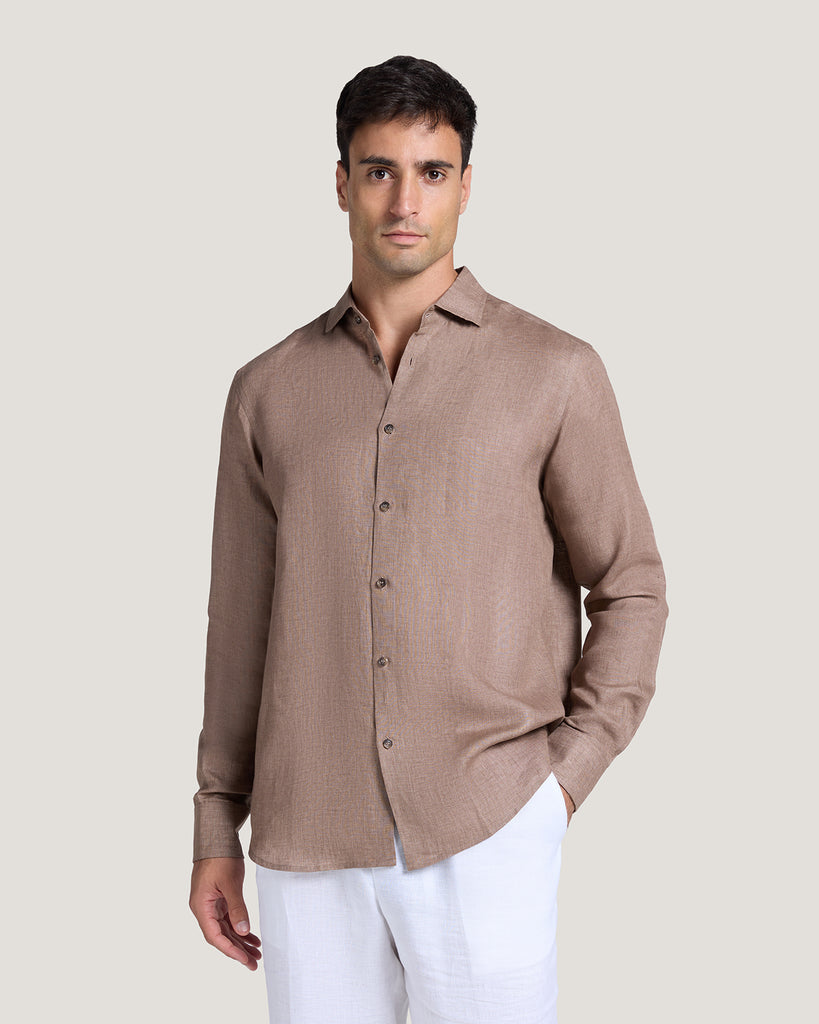 Carter & White’s classic linen shirt is a timeless garment that can be styled up or down, whatever the occasion calls for. Crafted from a lightweight and breathable light beige, linen fabric, providing both comfort and sophistication. It features a classic button-down style and a spread-collar with buttoned cuffs.