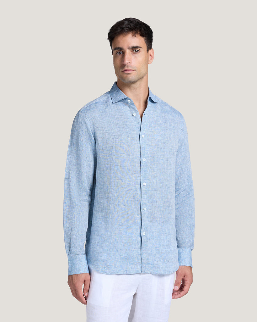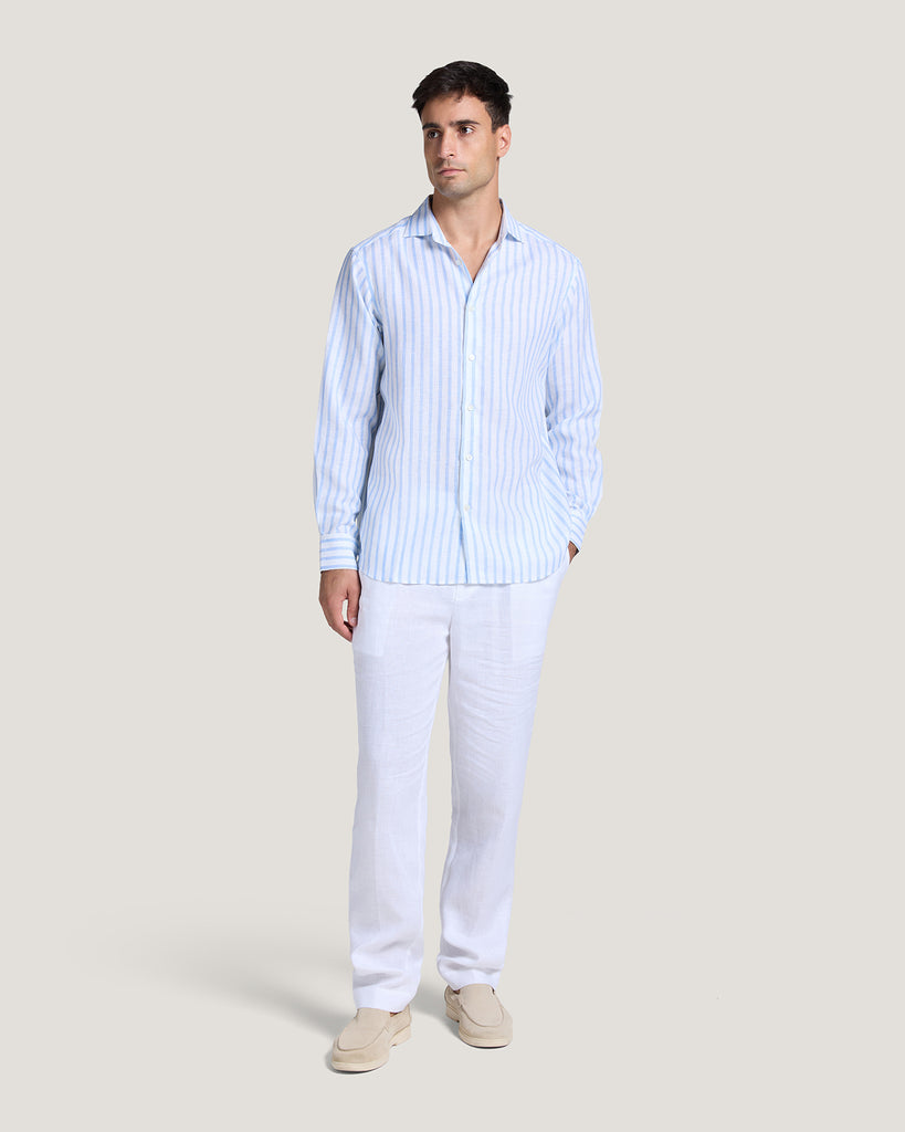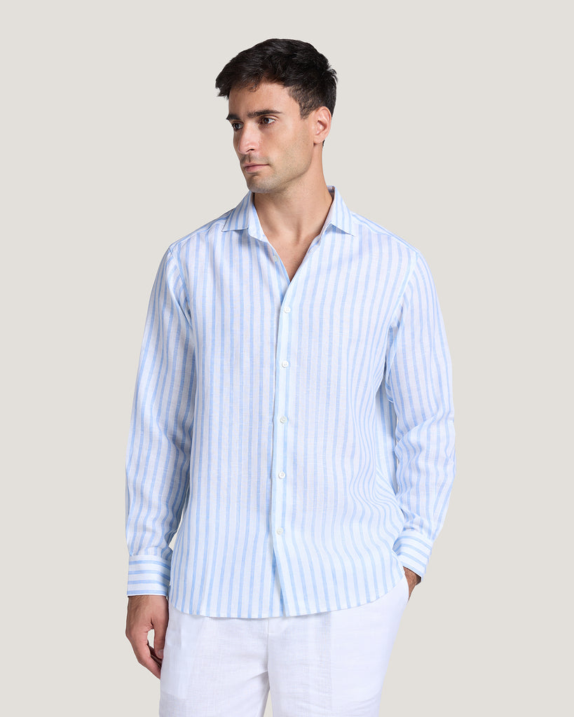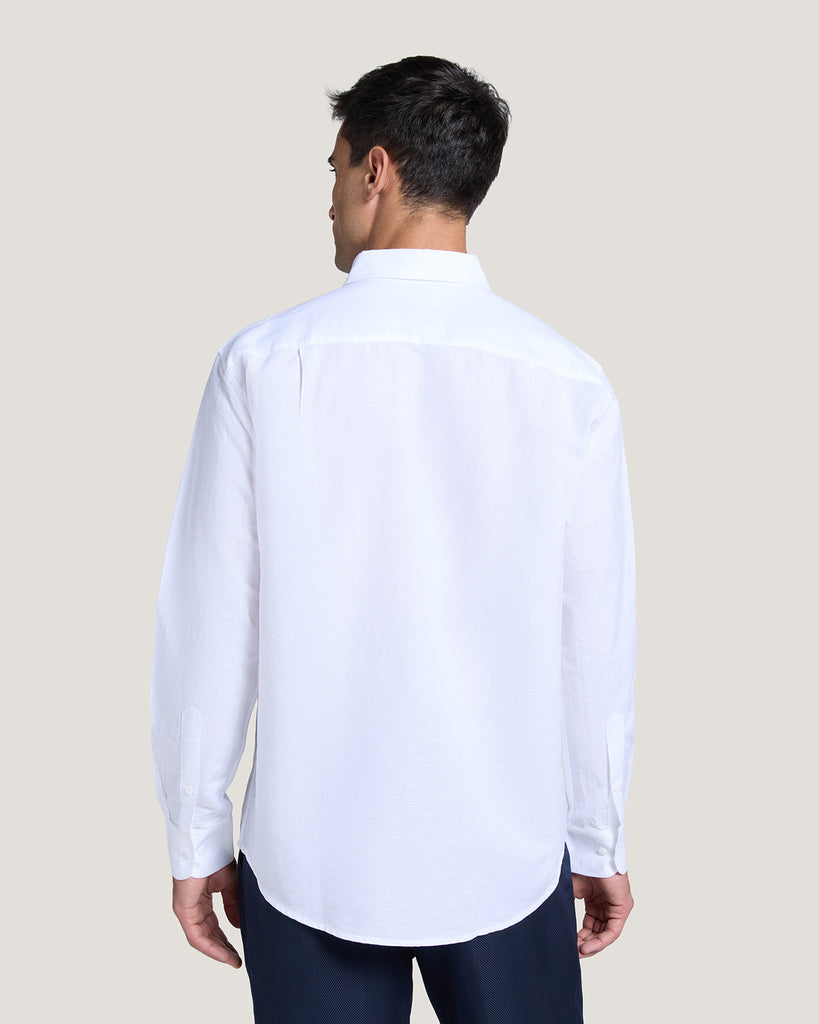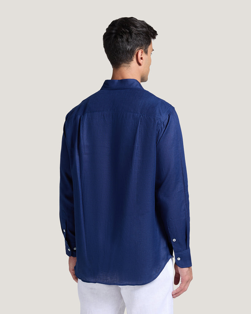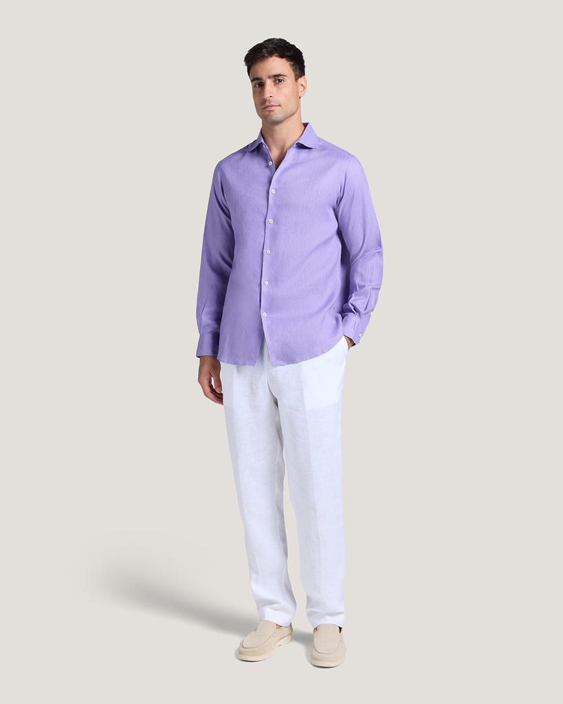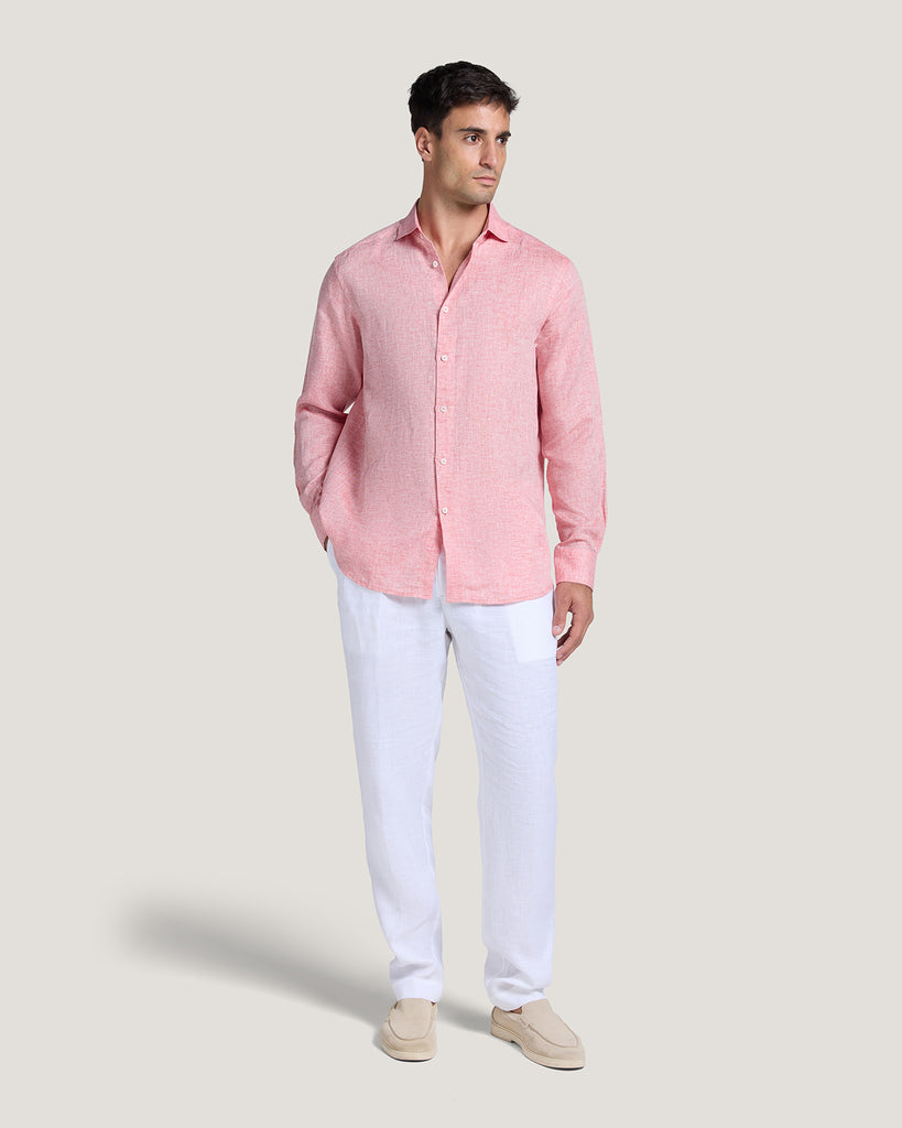 Carter & White’s classic linen shirt is a timeless garment that can be styled up or down, whatever the occasion calls for. Crafted from a lightweight and breathable light beige, linen fabric, providing both comfort and sophistication. It features a classic button-down style and a spread-collar with buttoned cuffs.