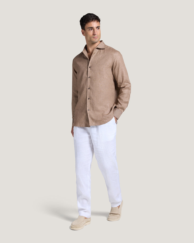 Casual yet extremely refined, this shirt is the perfect choice for leisure dressing. Ideal for warm-weather days, it transitions seamlessly from relaxed outings to more polished occasions. Whether worn alone or layered under a jacket, the Carter Linen Shirt embodies timeless style and modern versatility.