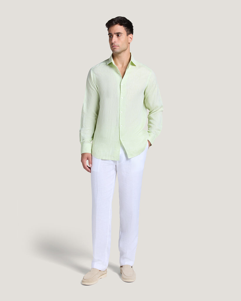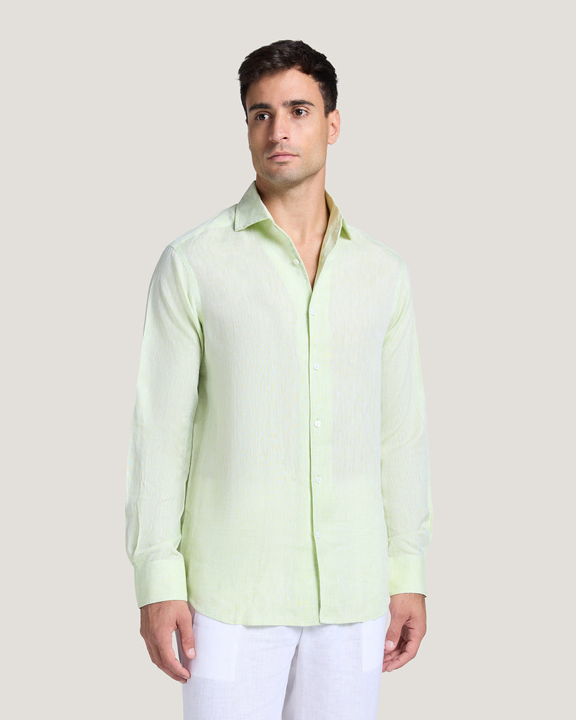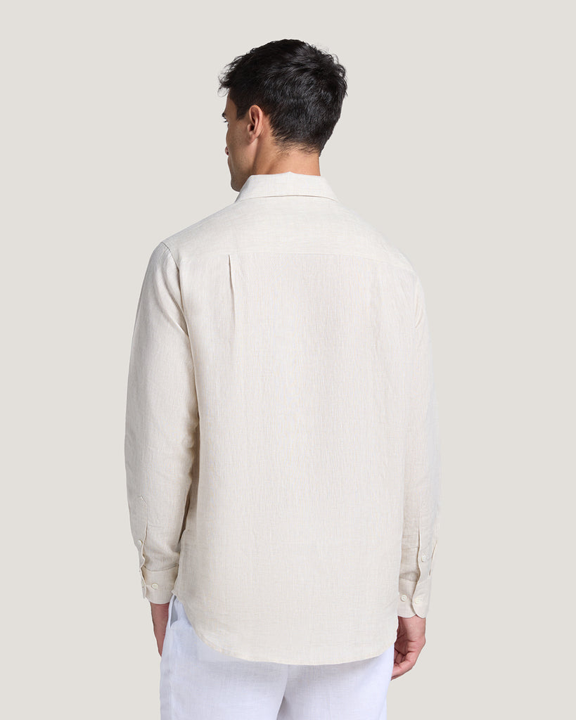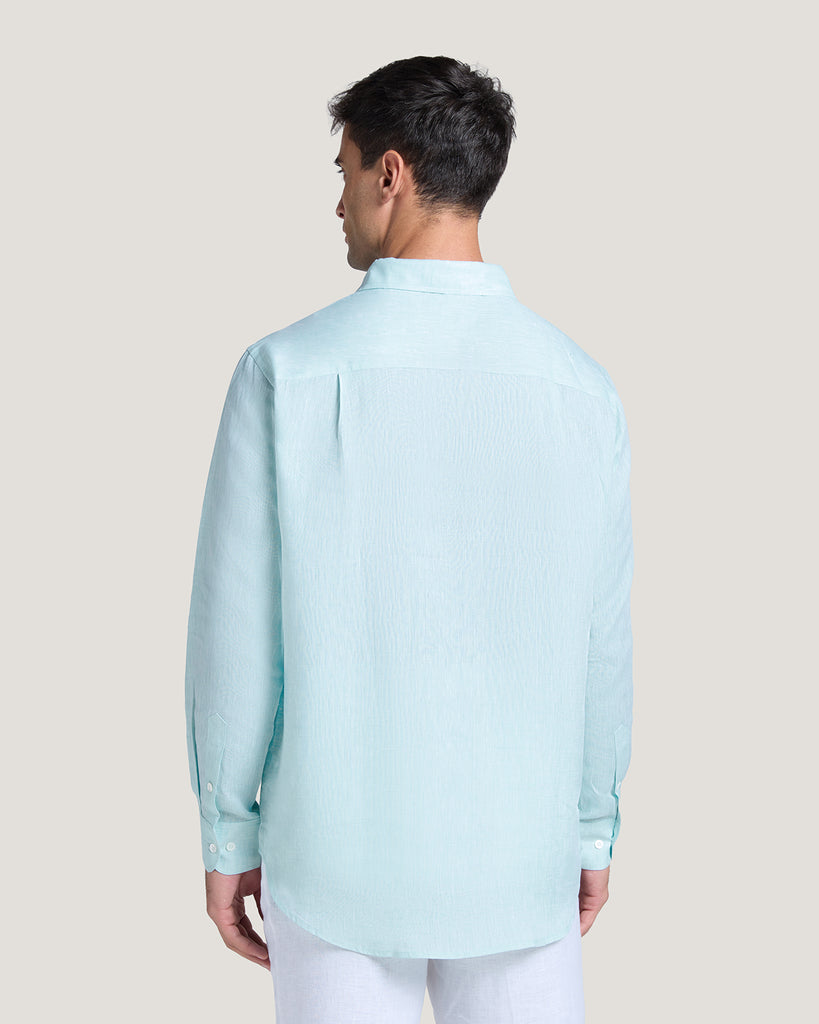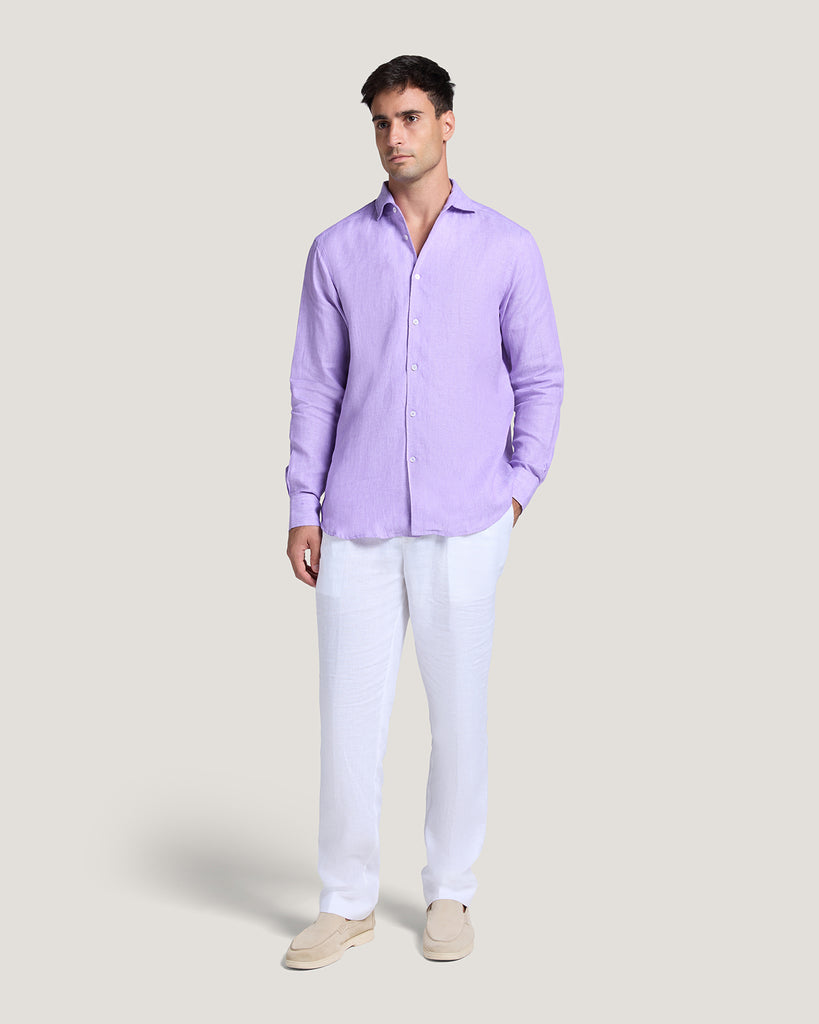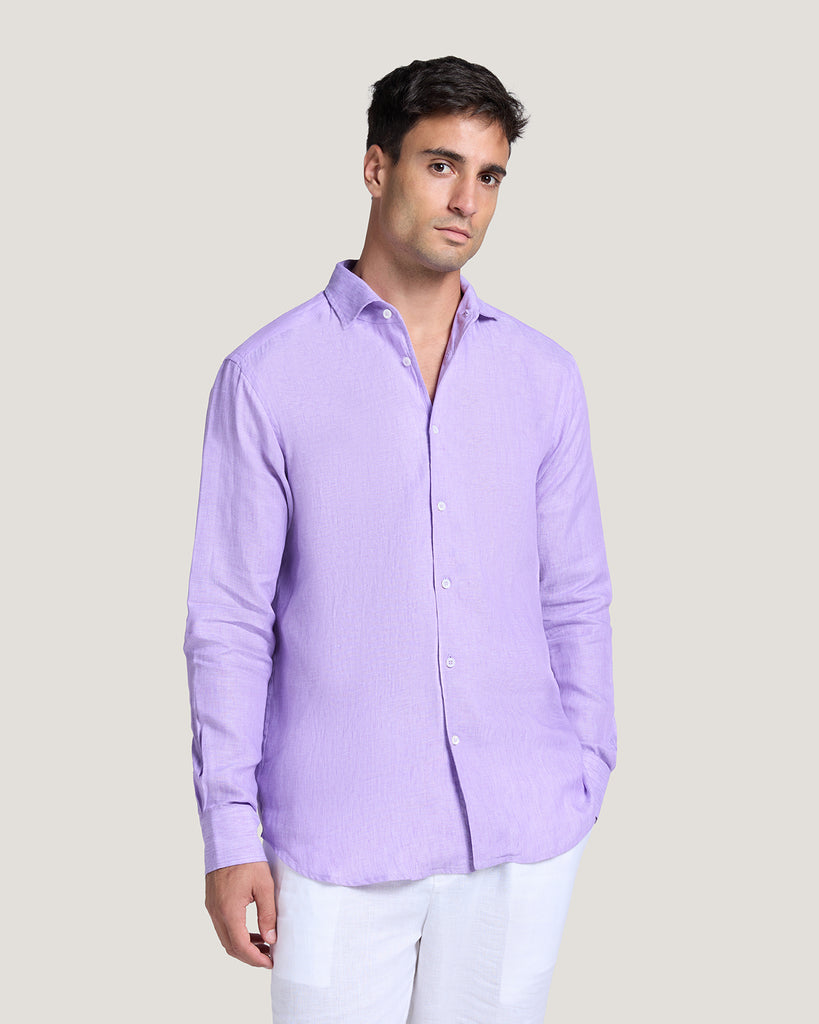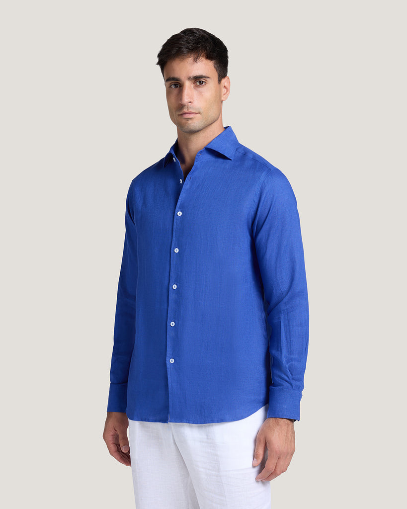 Crafted from pure linen, the Men's Carter Linen Shirt offers cool, fresh comfort that is a pleasure to wear. Its straight-fit design and long sleeves are complemented by a sharp cutaway collar with facings, ensuring a crisp, impeccable finish that maintains its elegance, even when worn open without a tie.