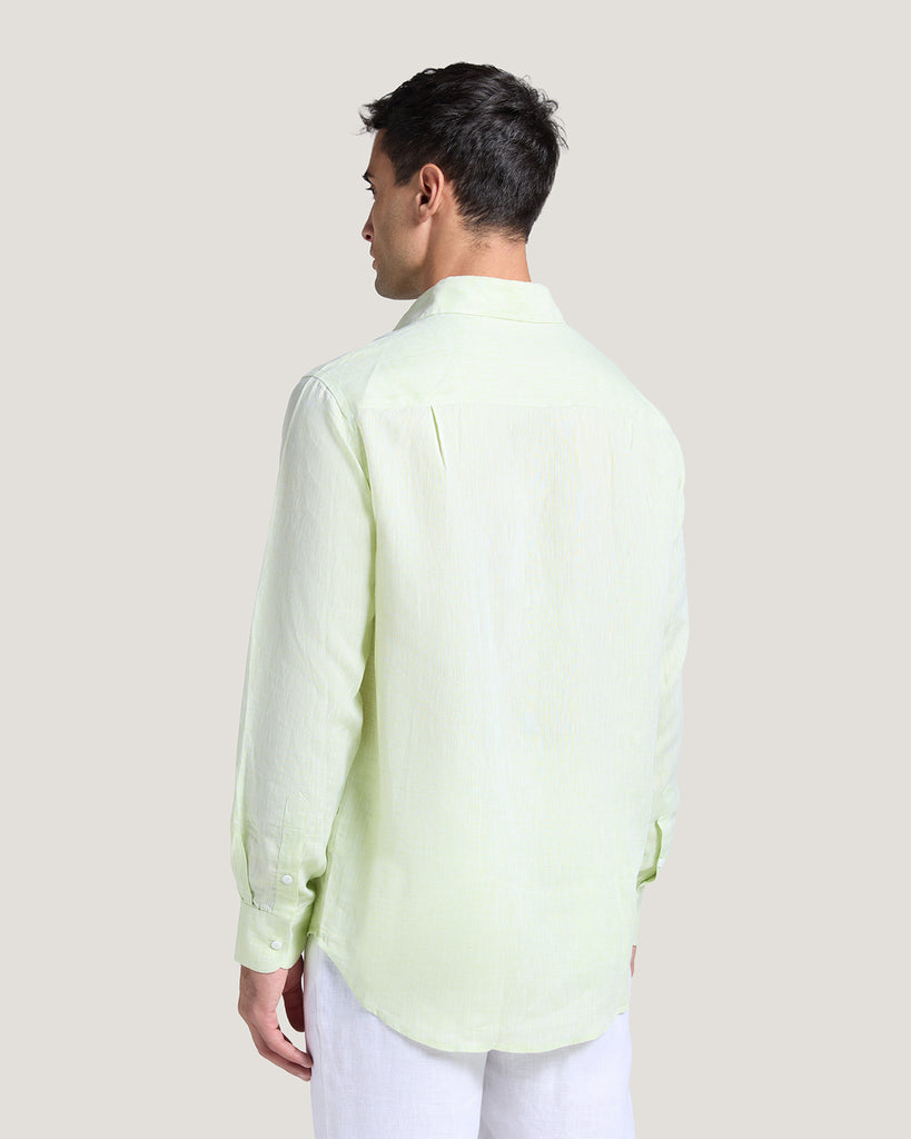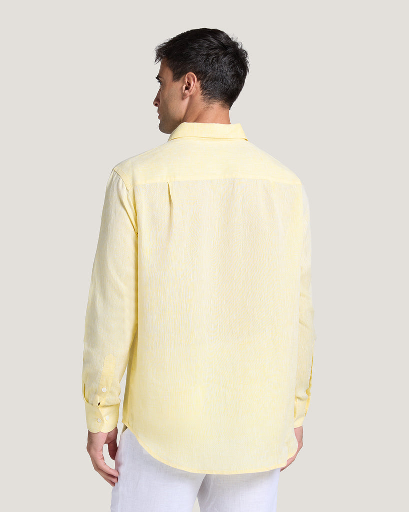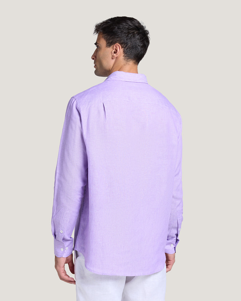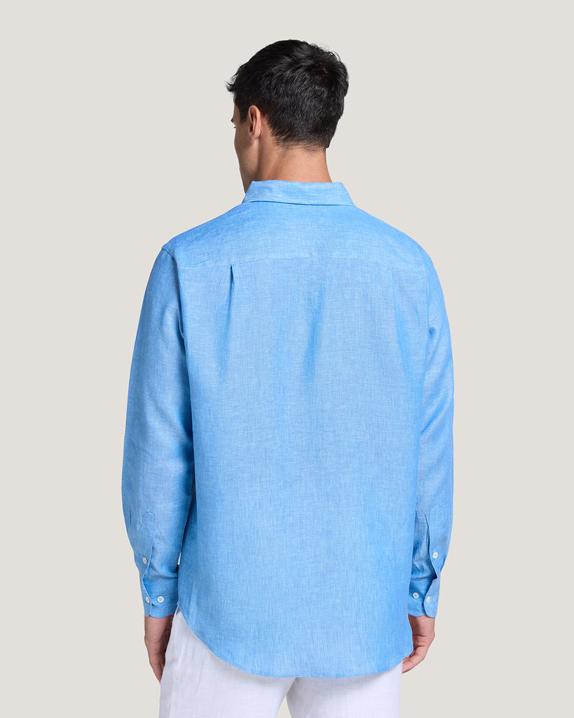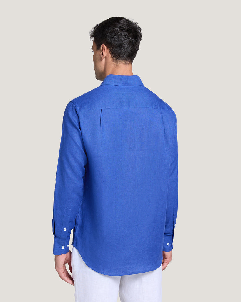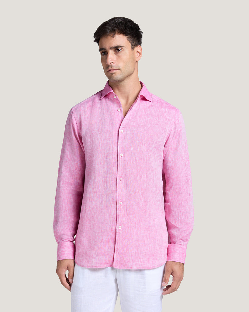 Crafted from pure linen, the Men's Carter Linen Shirt offers cool, fresh comfort that is a pleasure to wear. Its straight-fit design and long sleeves are complemented by a sharp cutaway collar with facings, ensuring a crisp, impeccable finish that maintains its elegance, even when worn open without a tie.