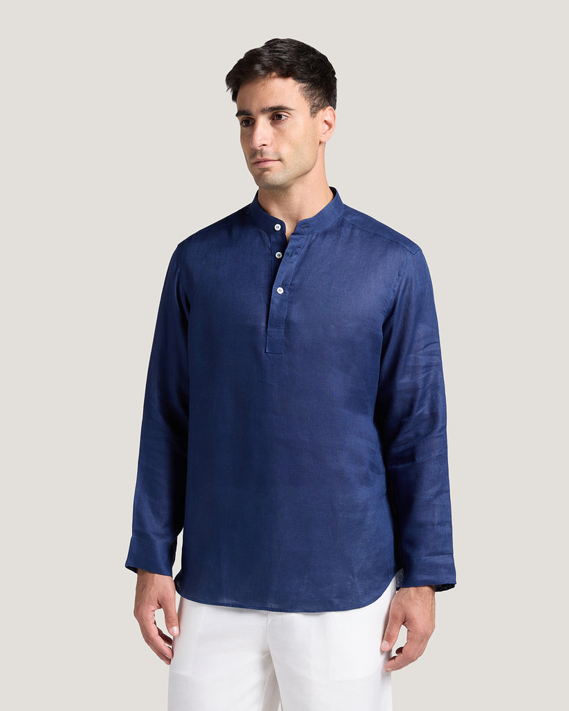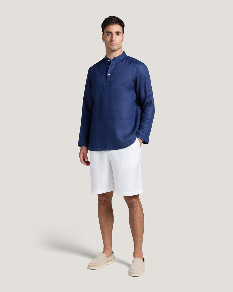 Clean lines and breezy everyday silhouettes take center-stage in our collection. A cut above the rest with a soft, breathable linen shirt with a relaxed, comfort-first aesthetic, long sleeves and button down mandarin collar, that’s sure to keep this design on high rotation all year round.