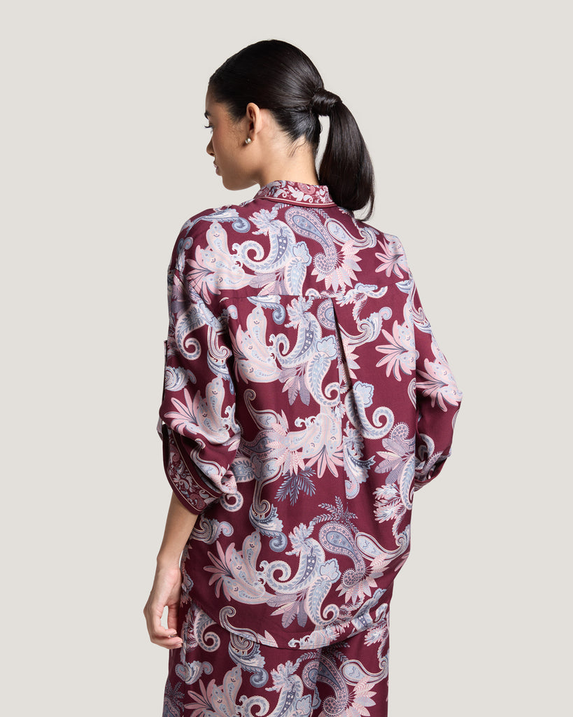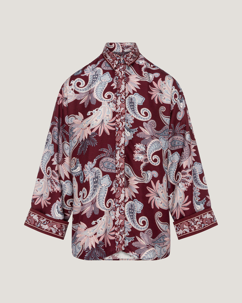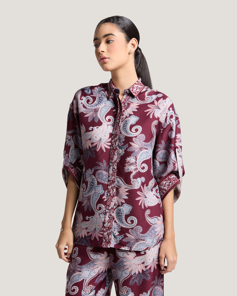 The Aurora Border Print Shirt is a modern expression of refined elegance, crafted from a luxurious blend of fabric. Designed with a fluid drape and soft texture, it offers comfort while maintaining a polished silhouette. The intricate border print elevates its timeless appeal, making it perfect for both professional and evening wear. Reflecting Dubai’s contemporary luxury and international style, the Aurora shirt is a versatile statement piece for the sophisticated woman.