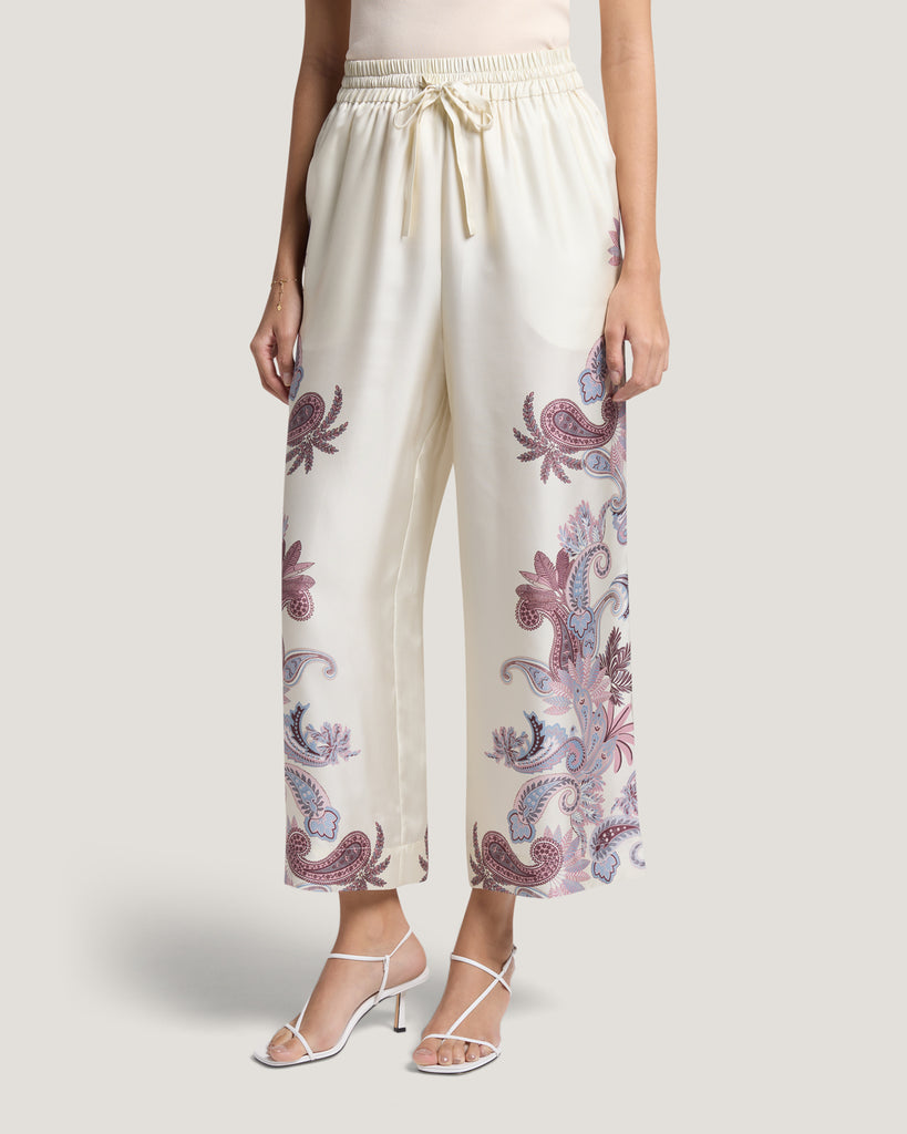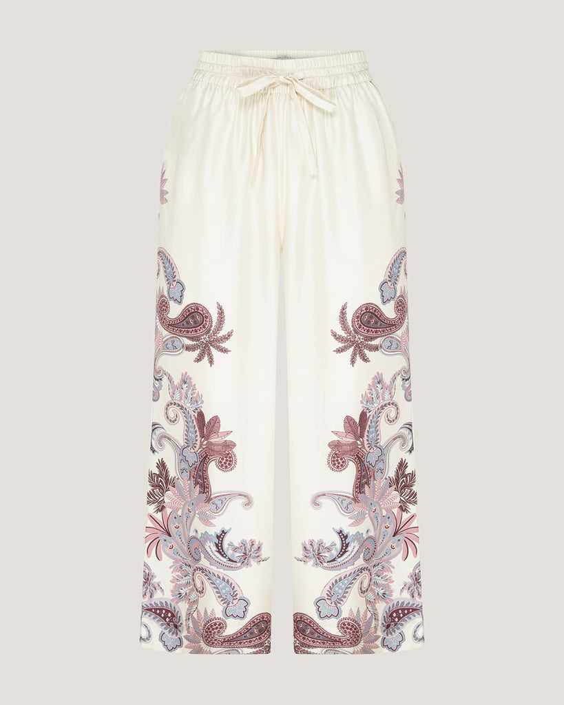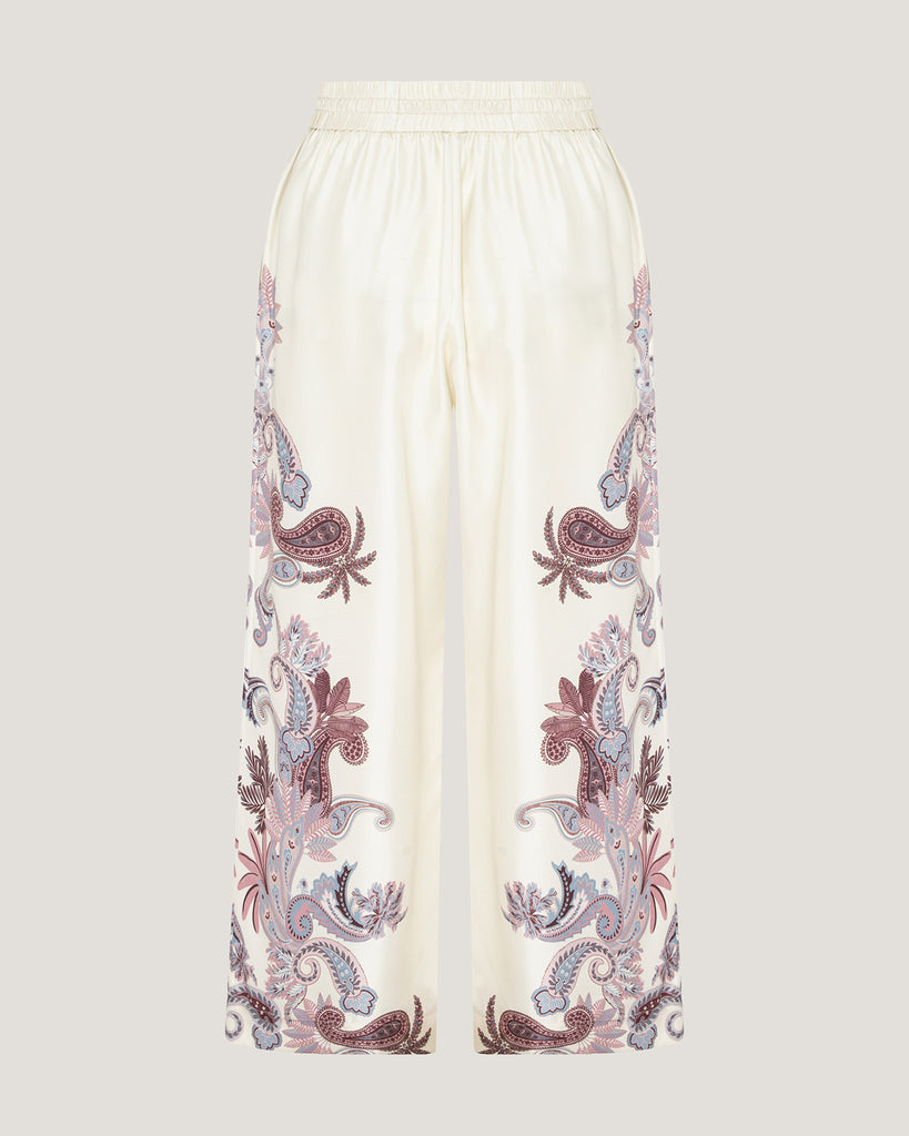 The Claire Printed Elasticated Straight Leg Trousers are crafted from 100% silk twill, offering a refined balance of comfort and elegance. Featuring a fluid straight-leg silhouette with an elasticated waist, they ensure effortless wear while maintaining a polished look. The delicate print adds a touch of sophistication, making them versatile for both day and evening occasions. Reflecting Dubai’s modern luxury and global appeal, the Claire trousers are designed for women who value timeless style and impeccable craftsmanship.