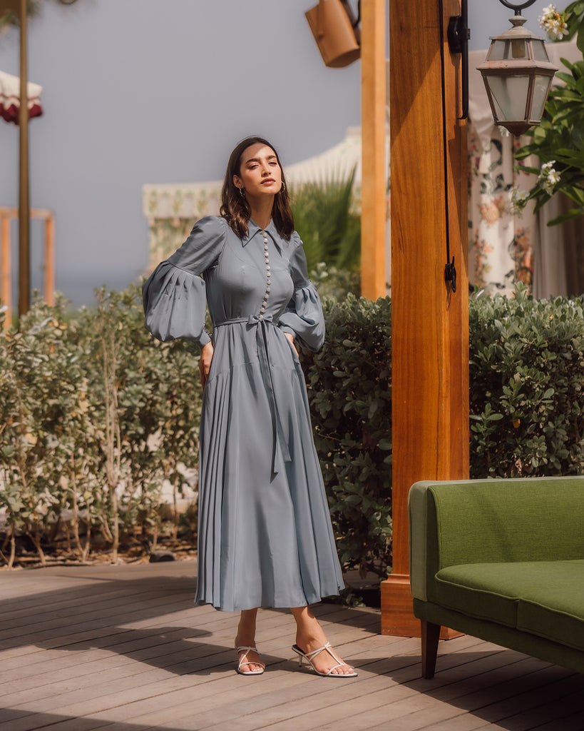 Elevate your wardrobe with the Tala Pleated Dress, a sophisticated statement piece crafted from 100% pure silk. Designed for the modern woman who appreciates elegance and comfort, this dress features delicate pleating that adds graceful movement and an effortlessly chic silhouette.
