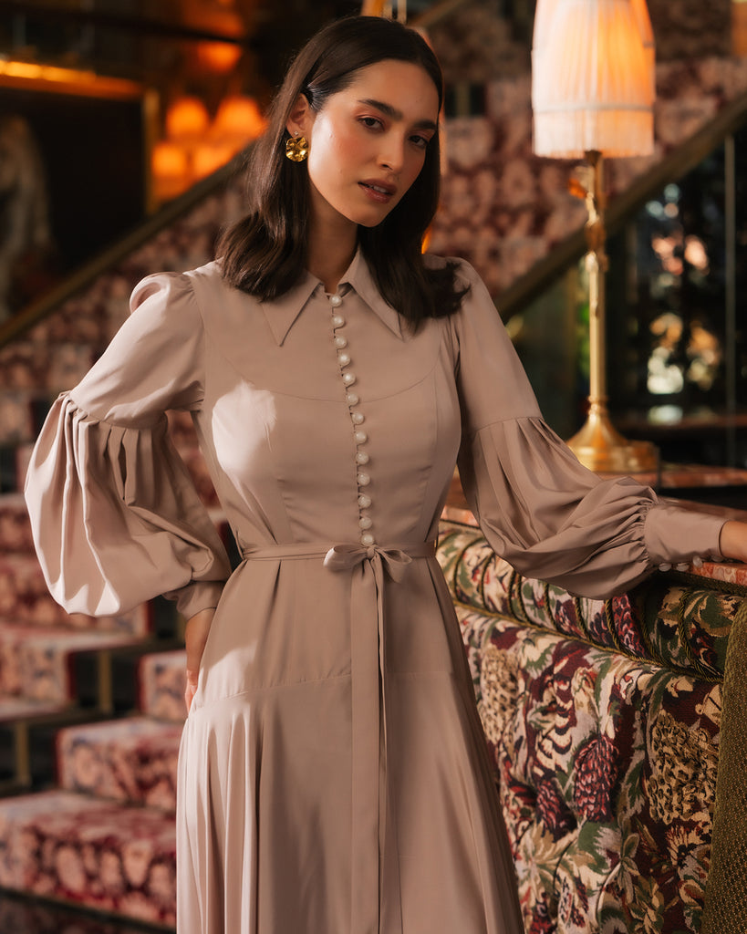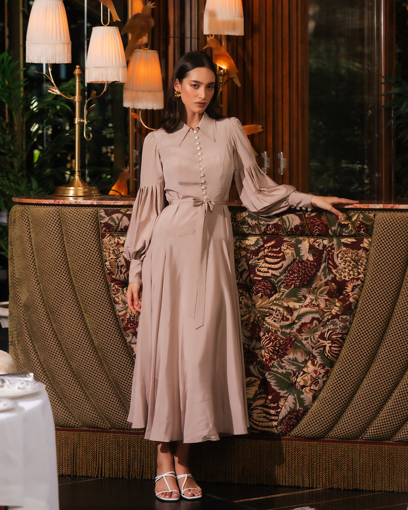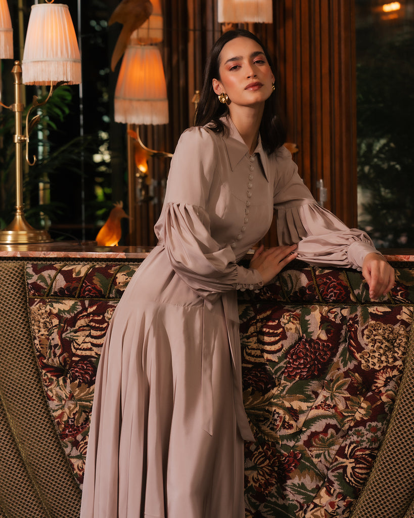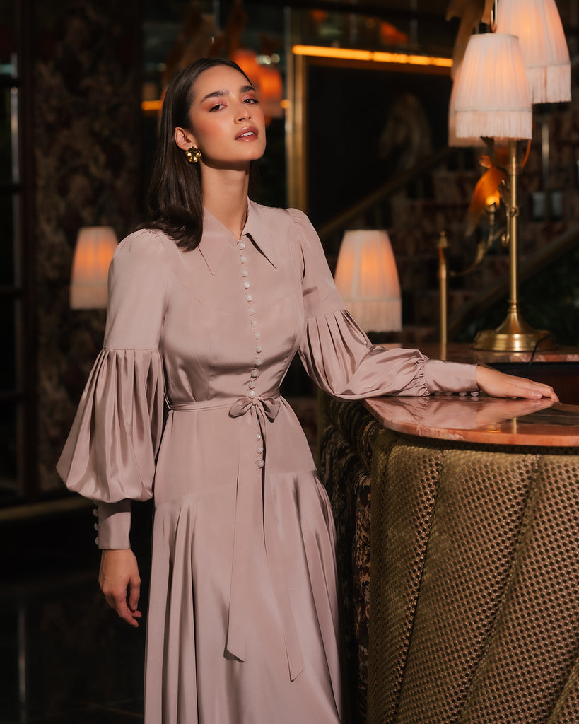 The natural sheen and softness of silk lend a luxurious feel, making this dress ideal for special occasions, evening events, or elevated everyday wear. Lightweight yet striking, the Tala Dress pairs beautifully with heels and fine accessories for a polished, head-turning look.