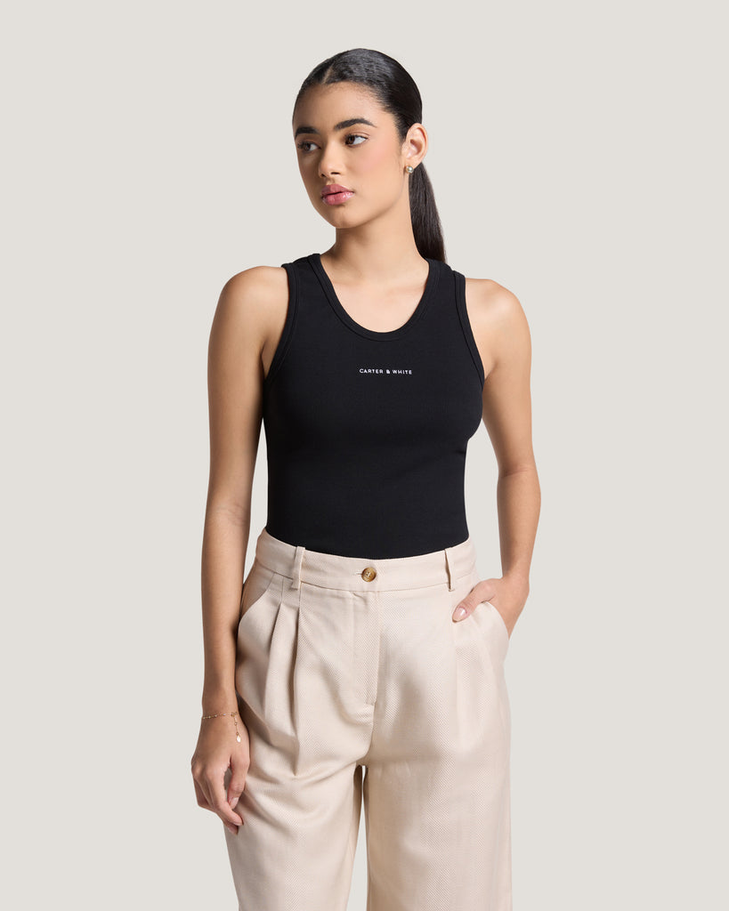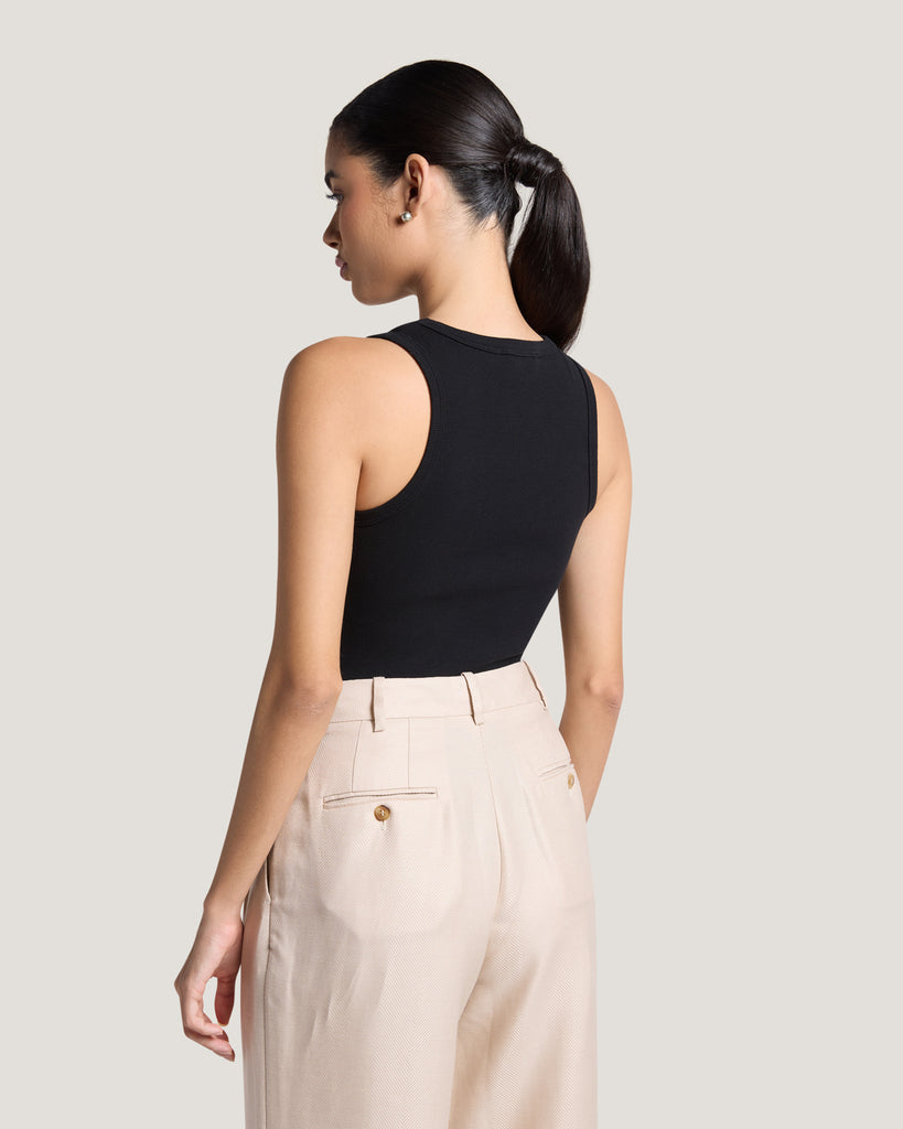 The Alaia Tank Top offers effortless style and comfort. Made from high-quality cotton, this tank top features a flattering slim fit and a classic round neckline. Perfect for layering or wearing on its own, this versatile piece is a must-have for any wardrobe. The breathable fabric ensures all-day comfort, making it ideal for various activities. Shop the Women Alaia Tank Top in black for a chic and timeless addition to your collection.