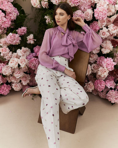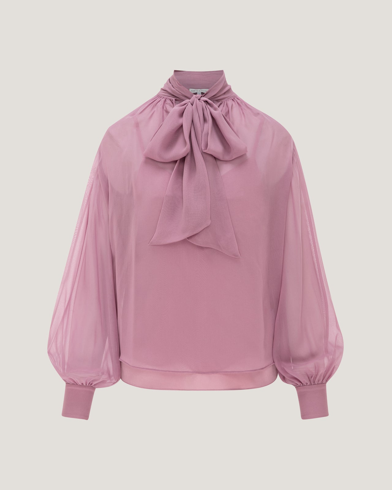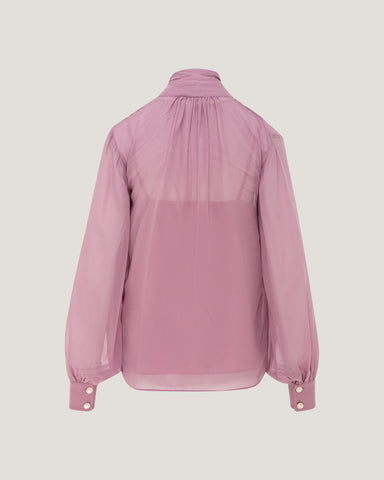 A romantic interpretation of modern elegance, this blouse is crafted from airy silk georgette in a soft rose hue. The fluid fabric drapes effortlessly over the body, creating a lightweight silhouette that feels both refined and feminine.