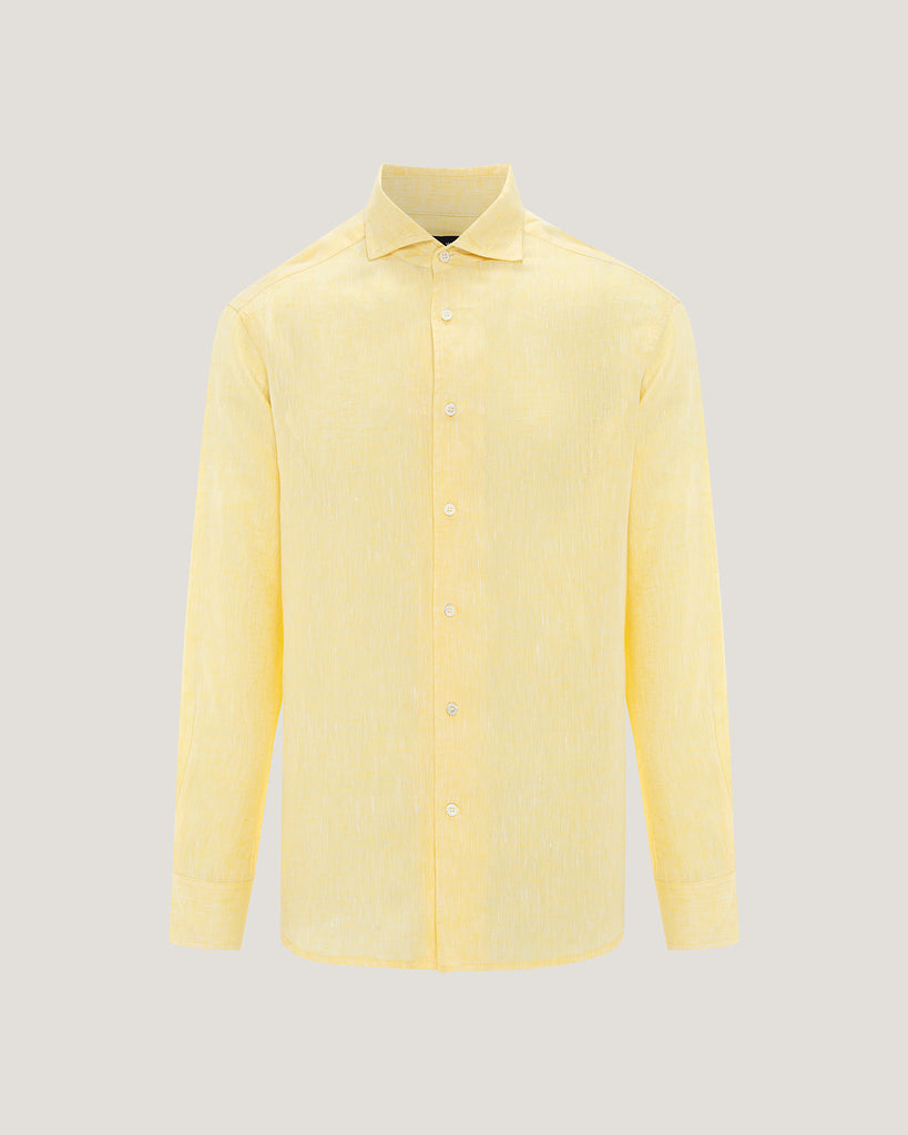 Crafted from pure linen, the Men's Carter Linen Shirt offers cool, fresh comfort that is a pleasure to wear. Its straight-fit design and long sleeves are complemented by a sharp cutaway collar with facings, ensuring a crisp, impeccable finish that maintains its elegance, even when worn open without a tie.