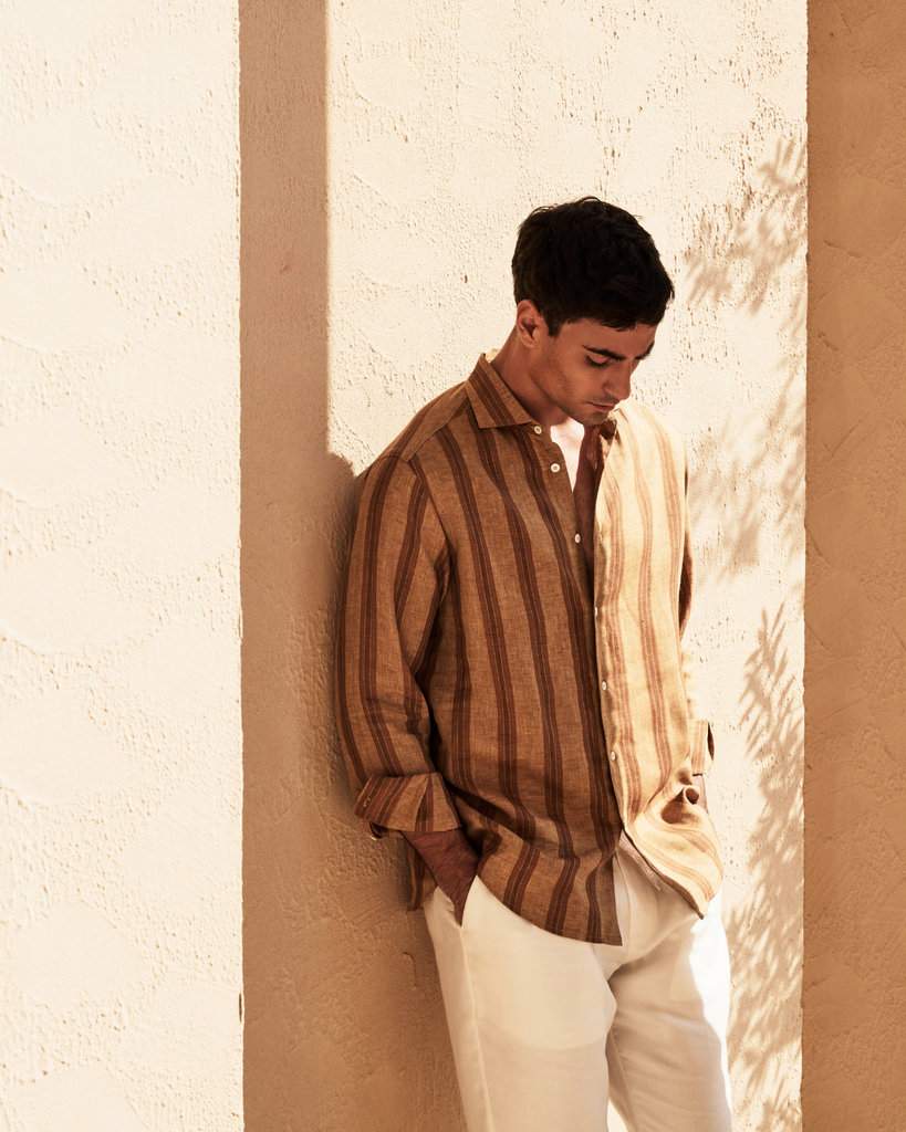 Carter & White’s classic linen shirt is a timeless garment that can be styled up or down, whatever the occasion calls for. Crafted from a lightweight and breathable light beige, linen fabric, providing both comfort and sophistication. It features a classic button-down style and a spread-collar with buttoned cuffs.