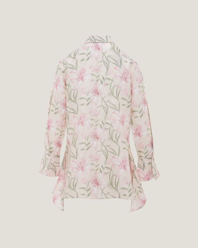 Sophistication meets modern elegance in the Carol Cuff Detailed Printed linen shirt. Crafted from premium linen, this piece embodies fluidity and refinement, offering a luxurious feel against the skin. The delicate beige Lily print creates a striking contrast, elevating its understated yet distinctive appeal.