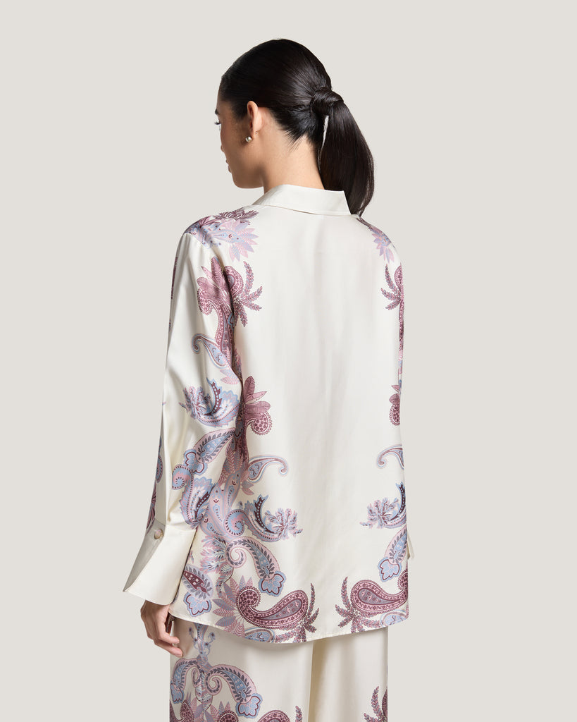 The Claire Cuff Detailed Printed Shirt is crafted from 100% silk twill, showcasing a luxurious finish with an elegant drape. Designed with intricate cuff detailing and a refined print, it brings sophistication to both professional and evening looks. Soft, lightweight, and timeless, this shirt reflects the essence of Dubai’s modern luxury and international appeal. A statement piece for the discerning woman, the Claire shirt blends impeccable craftsmanship with effortless style for every occasion.